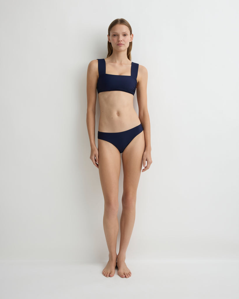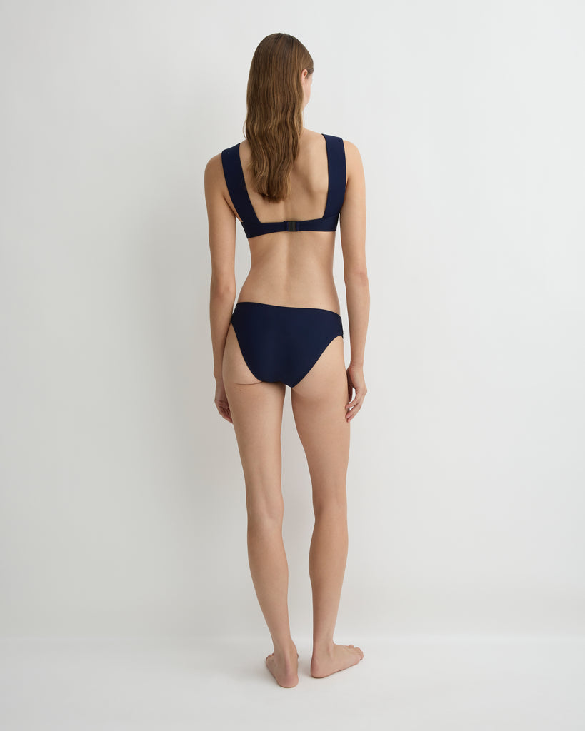 The Nadia Bikini Bottom in Navy is a classic midi bikini bottom, cut from our luxury, Italian Sculpteur® fabric with patented 3-D stretch. Nadia has a subtle scoop at centre front to flatter the tummy and a regular cut leg and bottom.