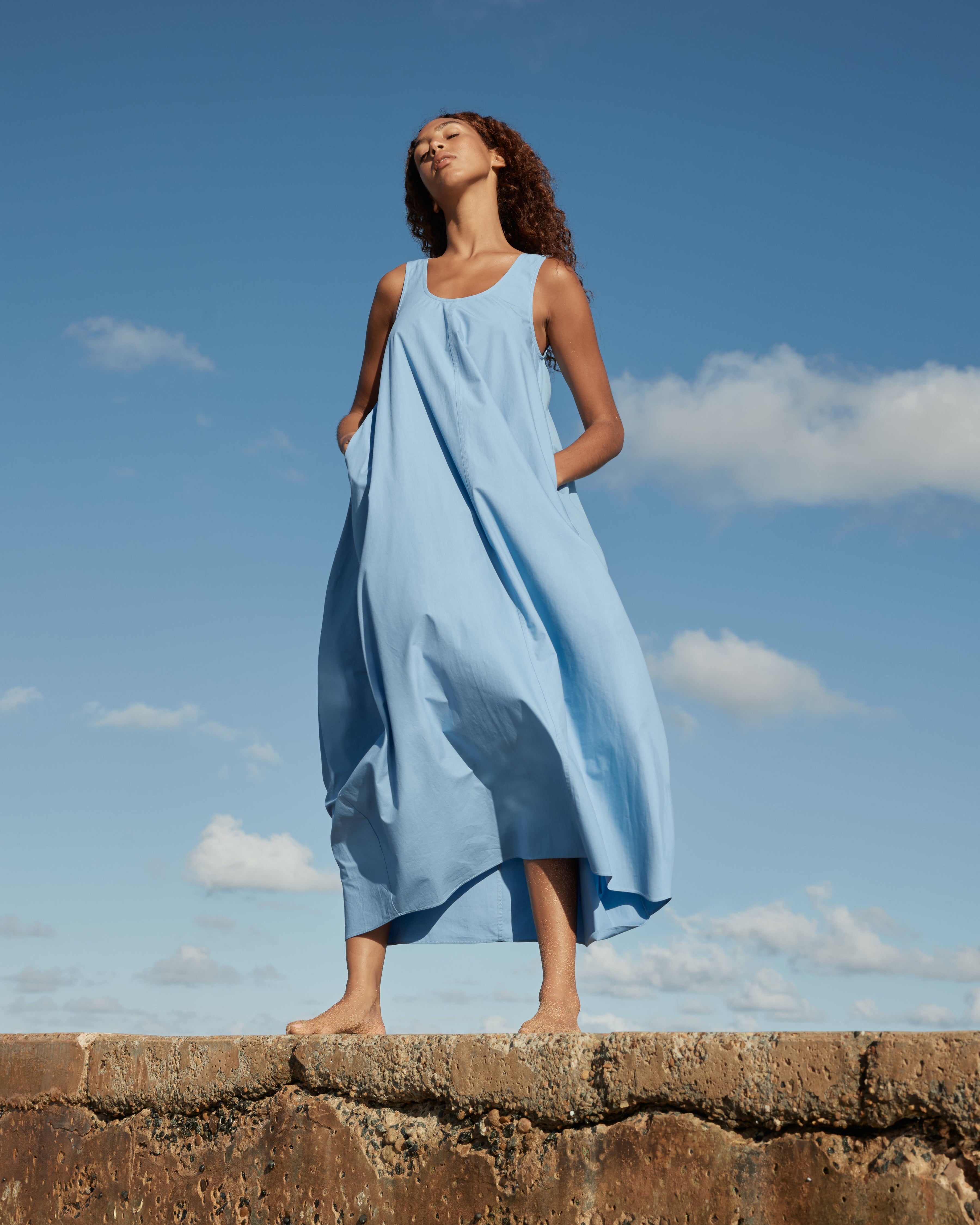The Avila Cocoon Dress in Dusk is a relaxed yet refined warm-weather staple, defined by its sculptural cocoon silhouette and statement scooped neckline. Cut in a flowing maxi length with discreet side pockets, its oversized fit brings ease and understated elegance to relaxed summer days. Crafted from lightweight Spanish organic cotton, Avila is designed for carefree summer days and effortless layering over swimwear.