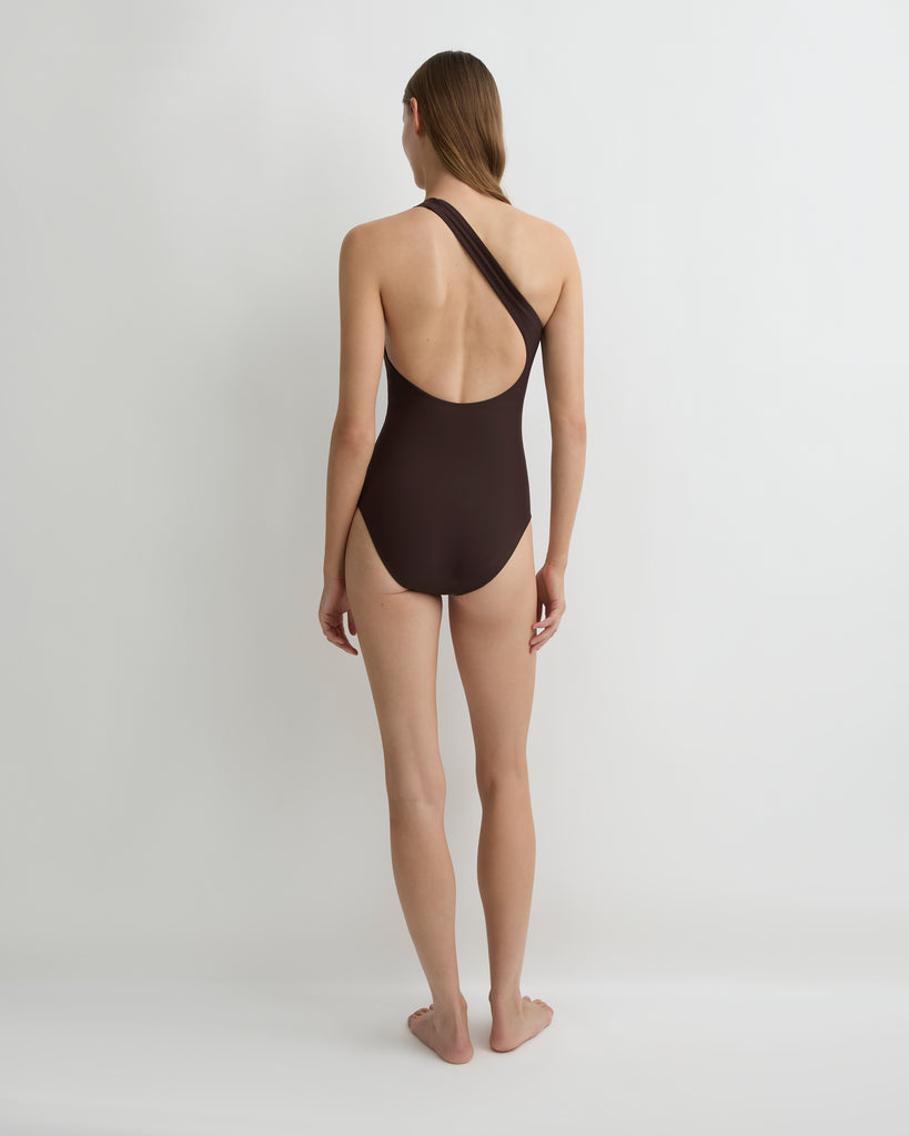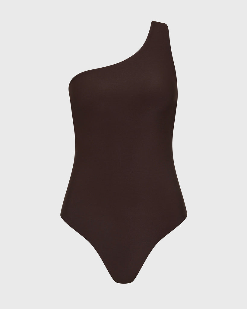 The Colette One Shoulder Swimsuit in Mocha is a signature Bondi Born style. Made using our unique Sculpteur® fabric with 3-D stretch, this elegant, classic one piece will never go out of style. Colette shapes the waistline and supports the bust with invisible under-bust support. The scooped out back adds a dramatic and sensual edge. This supportive and flattering piece suits cup sizes B to E.