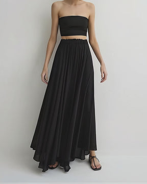 (Tariffs and duties included)The Cremona Maxi Skirt in black is crafted in sheer, lightweight voile for an effortlessly flowing silhouette. This full-length skirt features an elasticated waistband and gentle flare detaillng for a comfortable fit. Perfect for pairing with Cremona Kimono Top in Black.