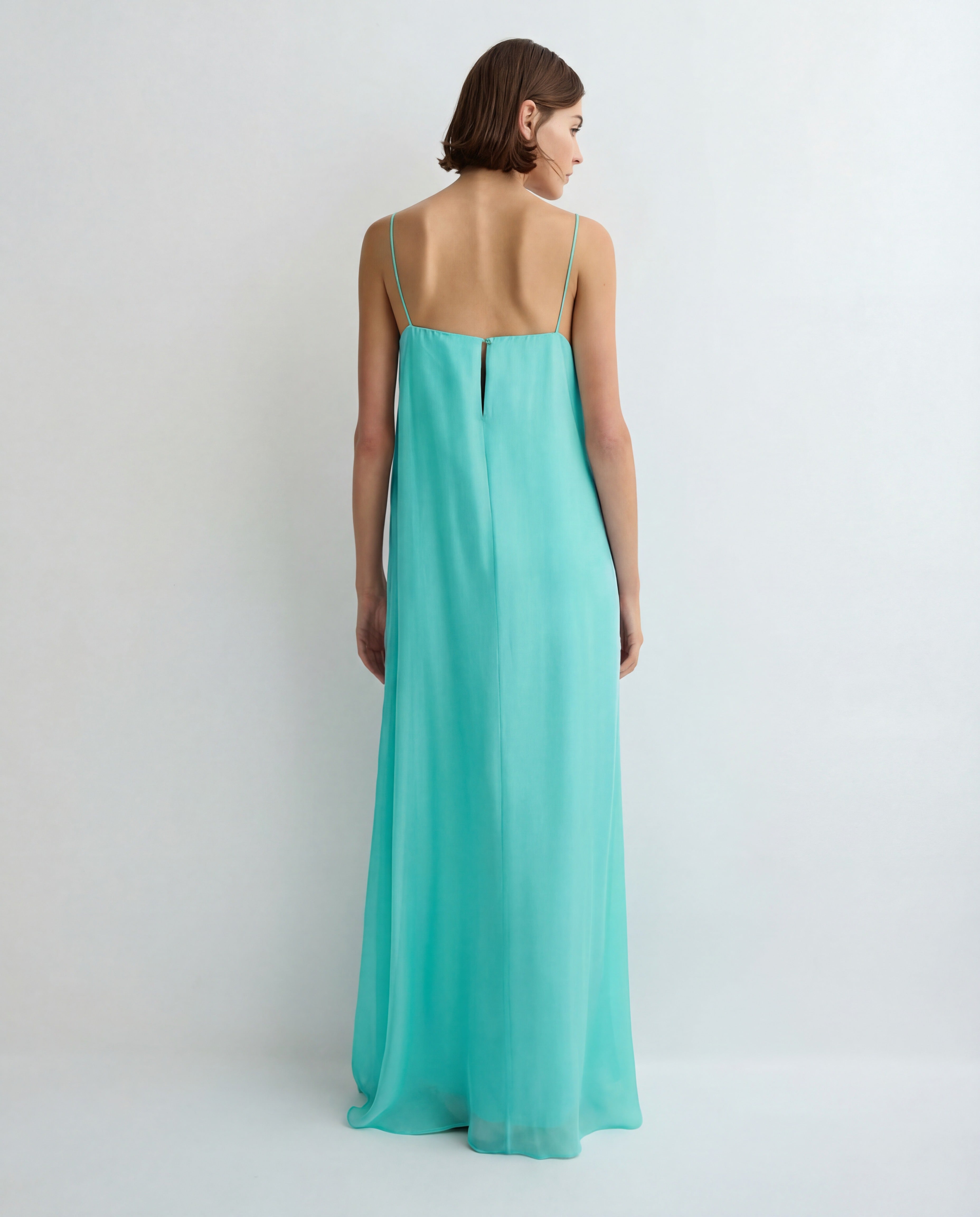 An effortless and flattering take on special occasion dressing, the Capri Silk Cami Dress in Aqua is cut from luxurious, 100% Silk and is lined in Italian FSC certified Viscose. This timeless silhouette features buttoning at centre back, adjustable shoestring straps and falls to the floor. The perfect dress for spring and and summer day or evening events.