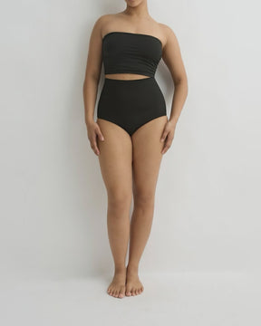 (Tariffs and duties included)The Betty Bikini Bottom in Black is a super high waisted boy leg bikini bottom with full bottom coverage. Betty is self-lined in our ultra-soft Embodee™ fabric with high shaping power. Betty can be worn high or folded down. Pair with any of our Embodee bikini tops in Black.