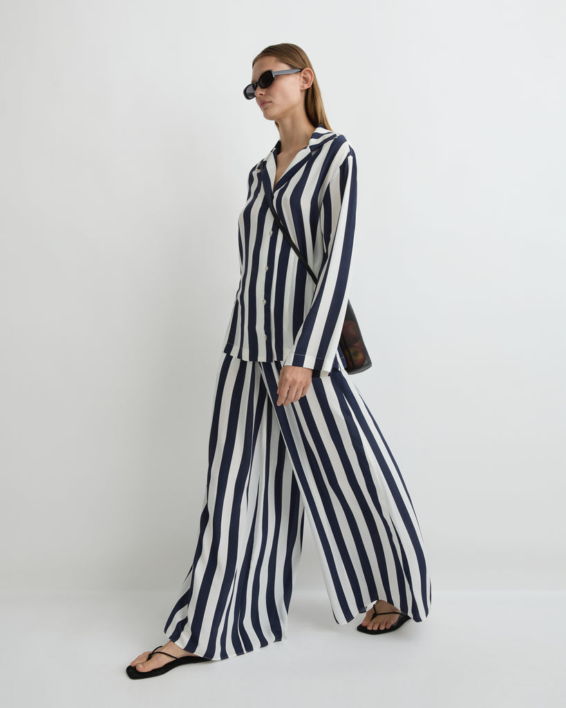 Orta Silk Long Sleeve Blouse - Navy Stripe
