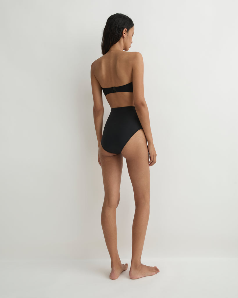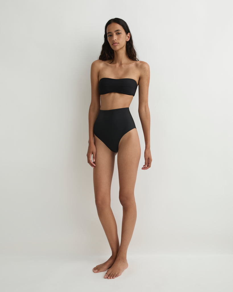 The Bella Bikini Top in Black is a sleek, strapless bandeau crafted from our advanced Sculpteur® fabric. Designed for a secure and refined fit, it features in-built cups and a seam across the bust for subtle shaping. Gripper tape along the top edge ensures it stays perfectly in place, while a sleek back clip adds a polished finish.