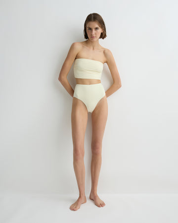 In fresh Porcelain, the Poppy Bikini Bottom combines a high-waist silhouette with a sporty high-cut leg line for an elongating effect. Made from our luxuriously soft Italian Embodee™ fabric, which is sustainably crafted, Poppy is self-lined for supreme comfort and gentle shaping power that refines the silhouette.