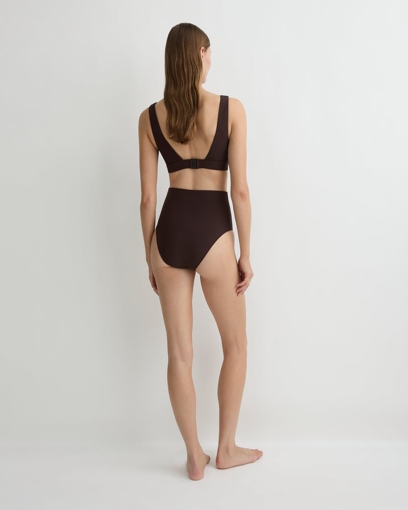 With clean, contemporary lines, the Anja II Bikini Top in Mocha brings understated elegance to the beach or pool. Wide, elasticated straps offer comfort and support, while removable cups enhance shape for cup sizes C to F. Crafted from our luxury, sustainably made Italian Sculpteur® fabric with patented 3-D stretch technology that lasts up to 10 times longer than standard swim fabrics. Self-lined in an ultra-soft, lighter version of Sculpteur® for supreme comfort, Anja II has a refined finish that will take you from beach to bar.