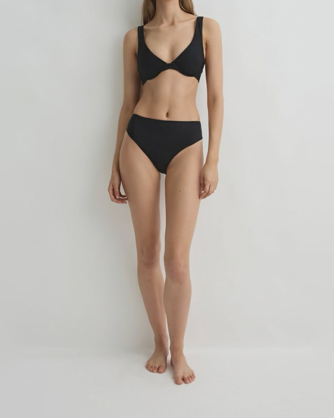 (Tariffs and duties included)The Fern Bikini Bottom in Black finishes at the waist and has regular bottom coverage. Fern has a higher cut leg-line than best-seller Faith and is crafted from our luxury, technically advanced Sculpteur® fabric that is sustainably made in Italy. Sculpteur® is engineered to smooth the silhouette and lasts up to 10 times longer than standard swim fabrics. Fern is self-lined with a lighter, luxuriously soft version of Sculpteur® for weightless comfort, making it as enduring as it is flattering.