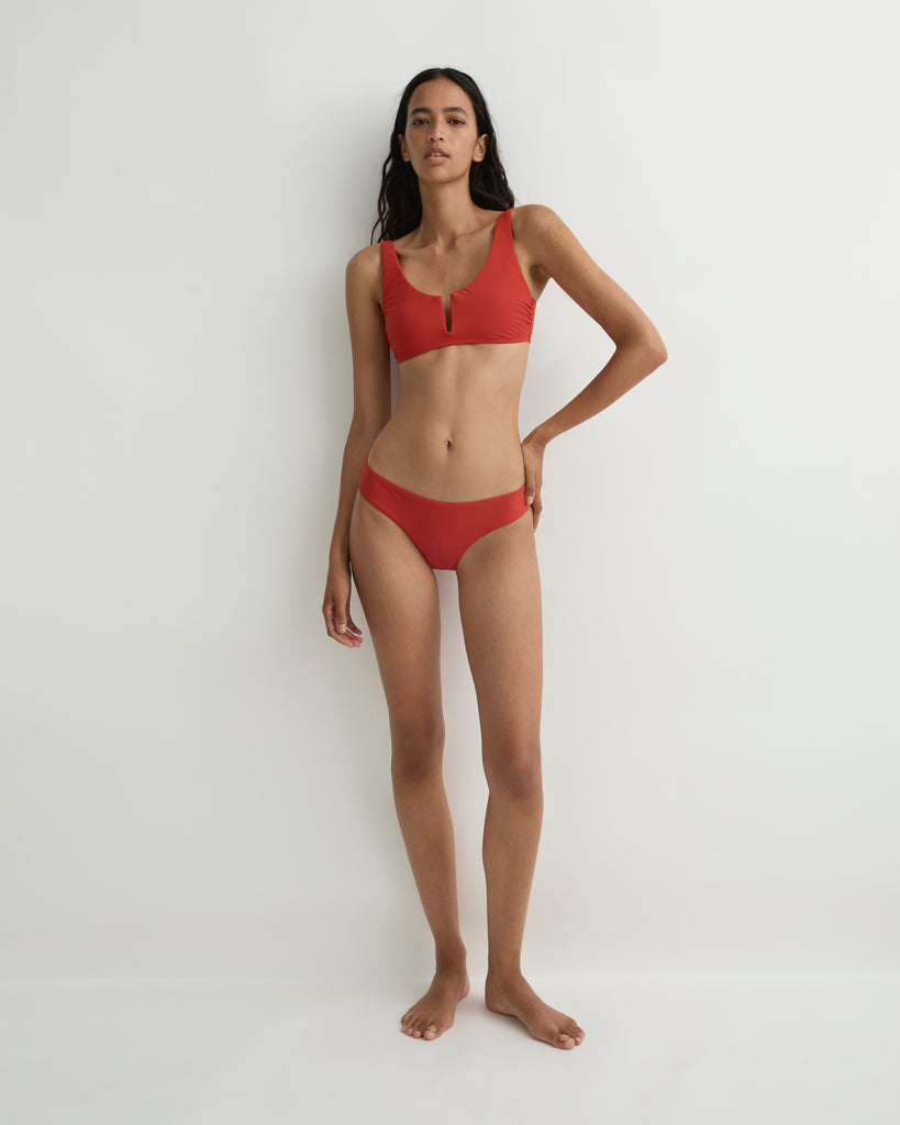 A timeless cut, the Nadia Bikini Bottom in Rosso is a classic midi bikini bottom, cut from our luxury, Italian Sculpteur® fabric with patented 3-D stretch. With a subtle scoop at the centre front to flatter the stomach and a regular cut leg and bottom, Nadia is a flattering staple.