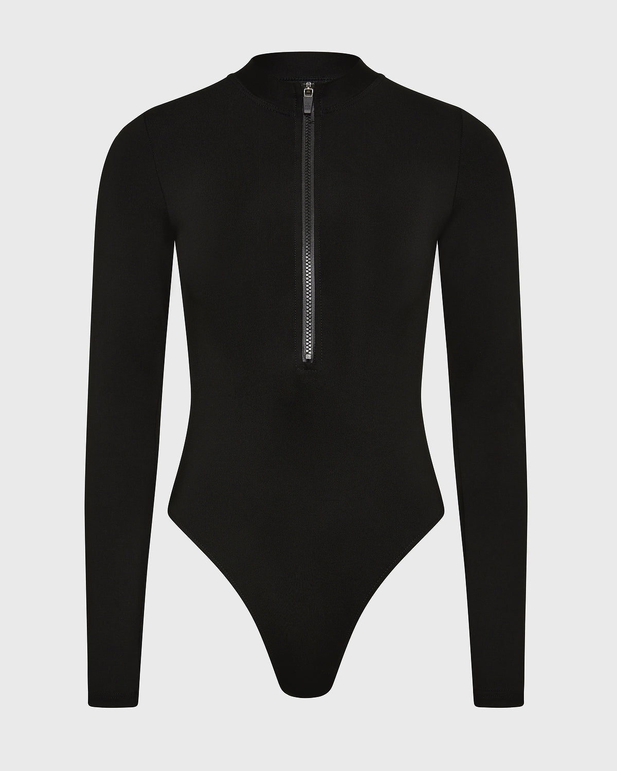 The Parker Long Sleeve One Piece in Black is a sleek, performance-driven swimsuit, crafted from our innovative Singuleur® fabric. Designed with long sleeves, a high neckline and a front zip closure, this modern silhouette offers elegant coverage with a streamlined finish. Made without cups, it moves like a second skin, smoothing and supporting the body while allowing complete freedom of movement.