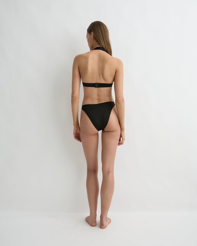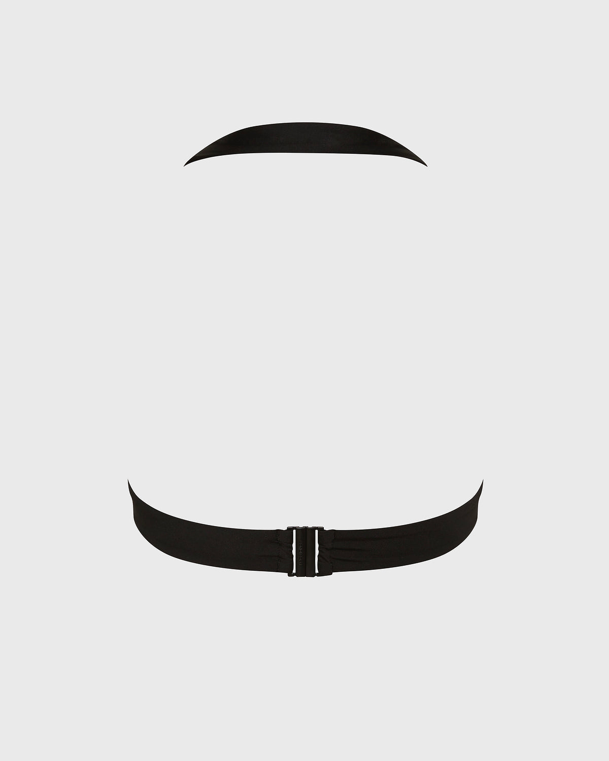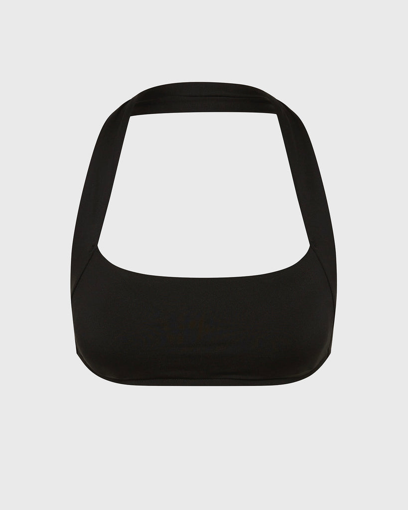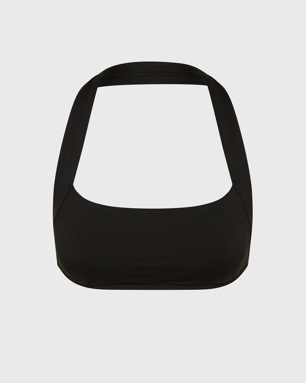The Cara Bikini Top in Black is an elegant bralette silhouette with a flattering square neckline. Designed with invisible under-bust support and removable cups, it combines structure with comfort. A unique halter-neck and back-clip closure ensure a secure fit, while the ultra-soft, self-lined Embodee™ fabric offers high shaping power and a smooth, second-skin feel. Breathable, quick drying and resistant to chlorine and pilling.