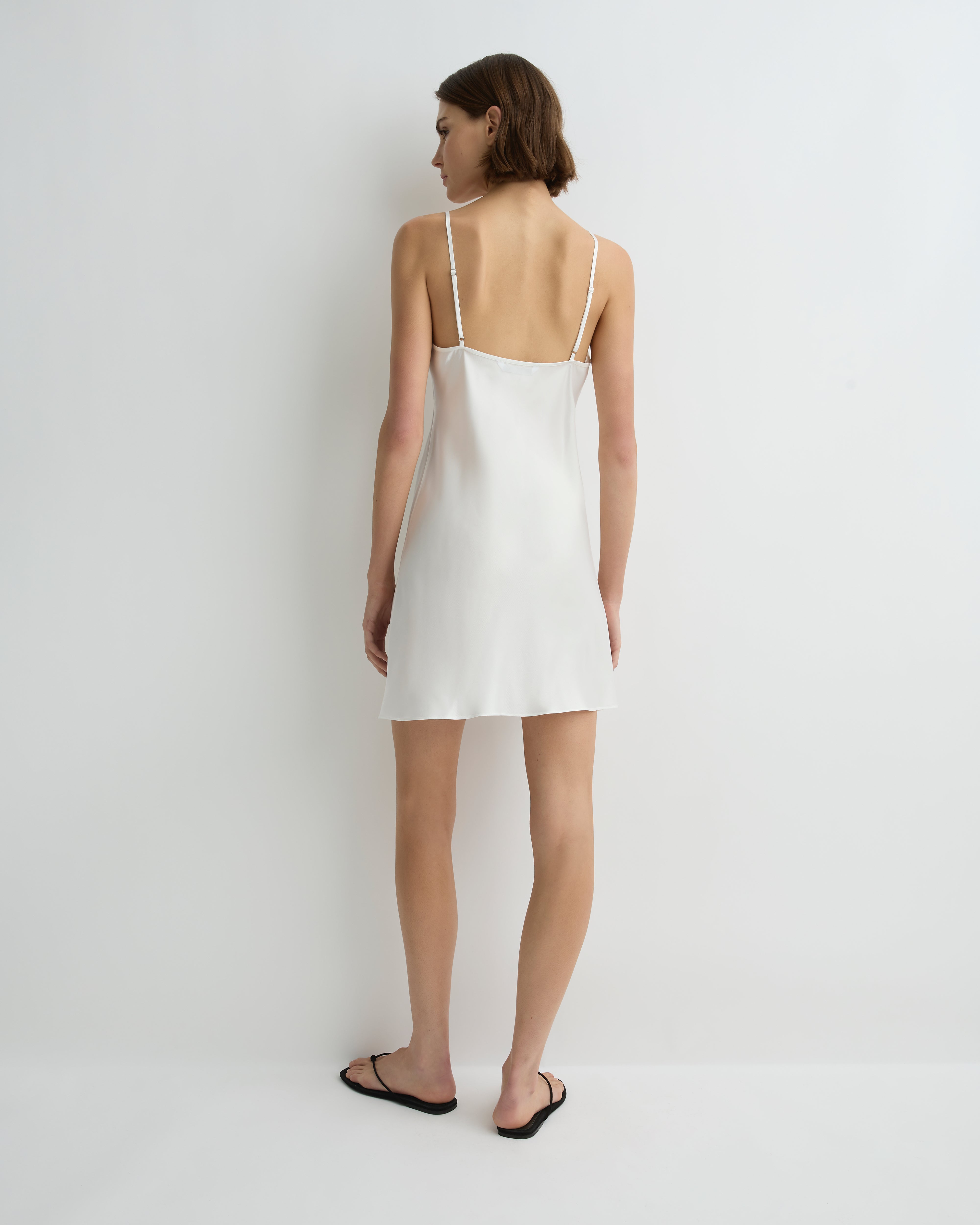 An elegant wardrobe essential, the Como Short Bias Slip Dress in White is a bias cut, crafted from fluid Italian viscose twill for a flattering drape. Designed with a straight silhouette that skims the body, it can be worn alone for understated evening style or layered beneath a sheer caftan or dress for a polished finish.