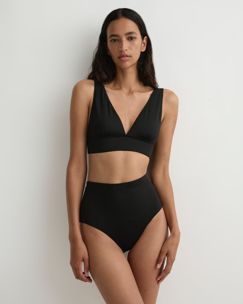 Our Sculpteur® swim fabric has a 3-D stretch that is designed to fit firm. Please size up if between sizes.