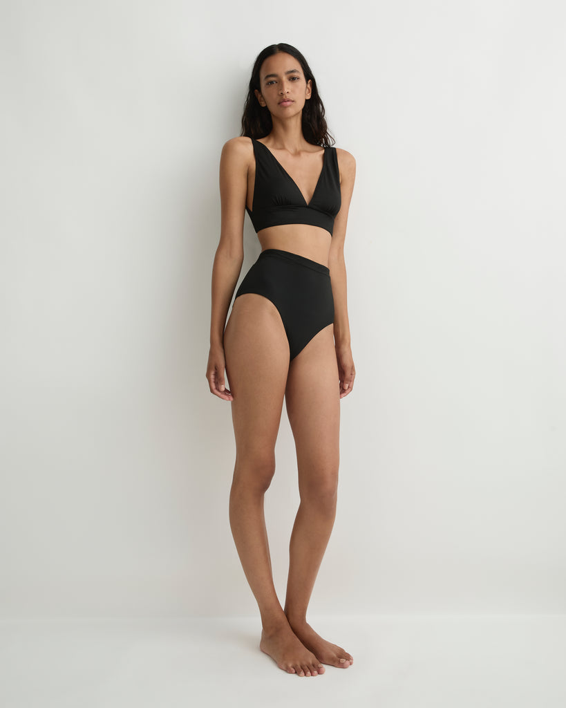 Our Sculpteur® swim fabric has a 3-D stretch that is designed to fit firm. Please size up if between sizes.